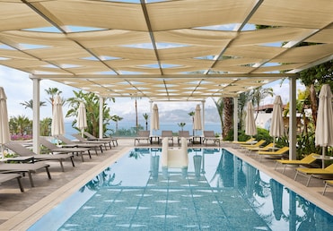 In the heart of Antalya, Akra Antalya offers an indulgent retreat. Enjoy fine dining at one of 4 on-site restaurants, unwind with a massage or body scrub at The LifeCo spa, and take in the views from the rooftop terrace. Fitness enthusiasts will appreciate fitness classes and outdoor activities like basketball and volleyball.