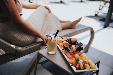 All the furnishings are lovely and so luxurious through the hotel. The rooftop pool is nice. Good selection of loungers (not just chairs). Nice views from the top. Pool isn’t huge but big enough. Free pool towels available at the pool, along with fruit and biscuits which was a nice treat.